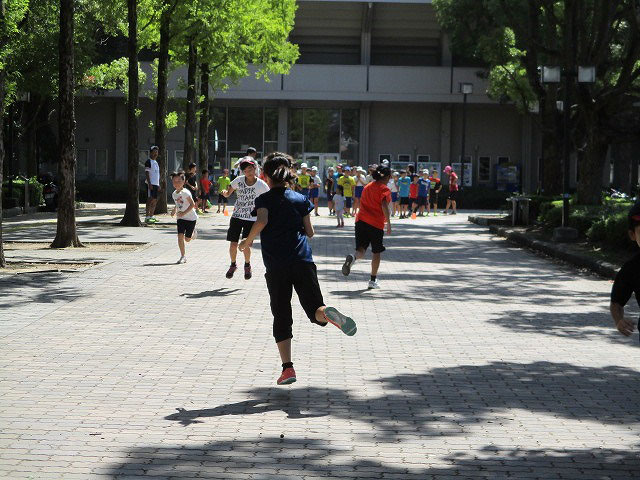 基本ドリルの後、ケンケンでのバウンドィングを、5mダッシュで競争を