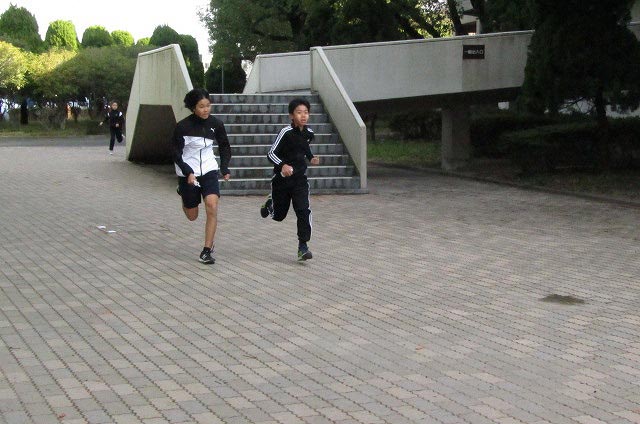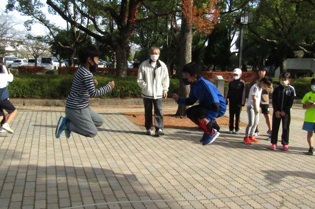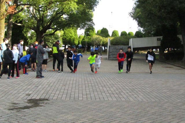 基本ドリルの後、低学年と高学年に分かれてのタイムトライアルをしました。