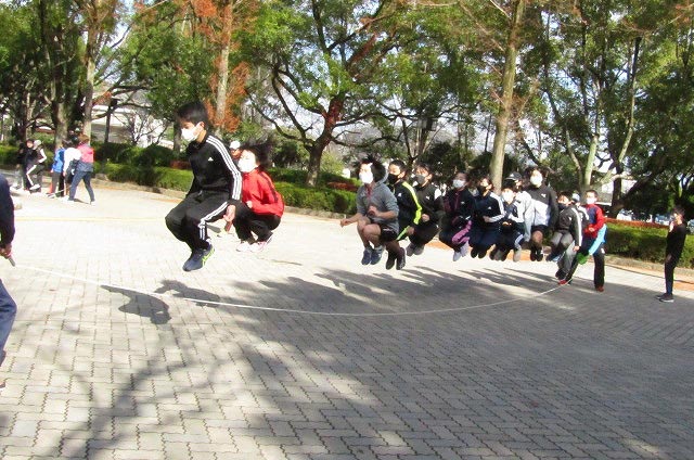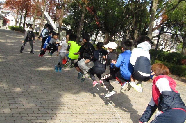 希望者は2本目も走りましたよ!!最後は低学年と高学年に分かれての長なわとびをしました