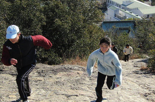 恒例の生石神社から展望台に、記念写真の後は、登山道でのダッシュをしました