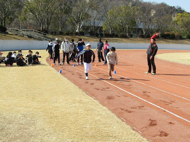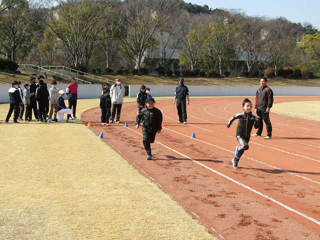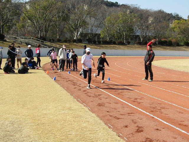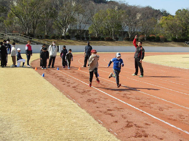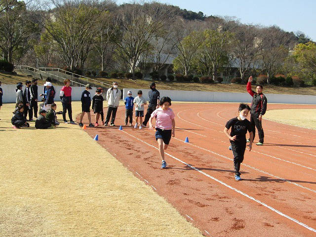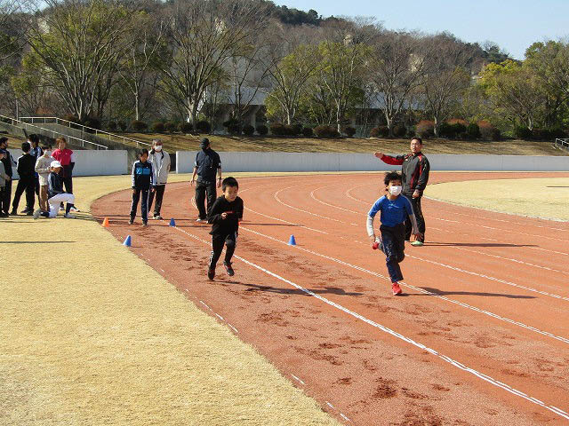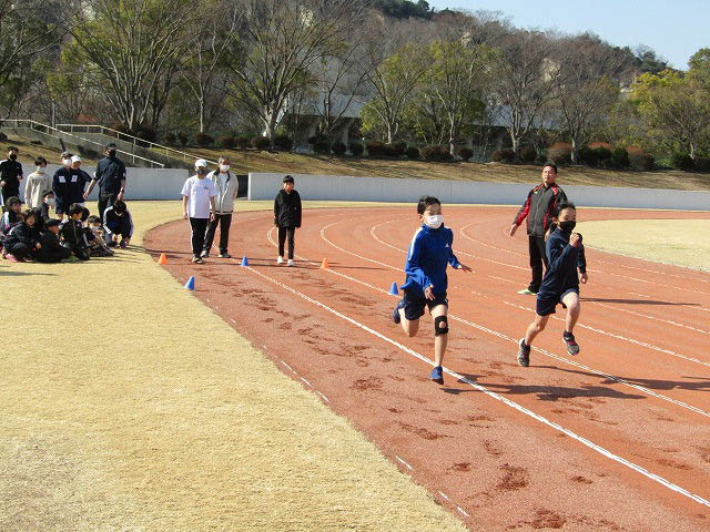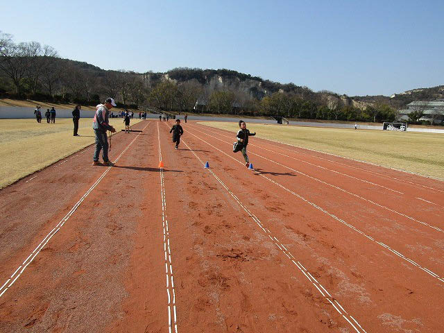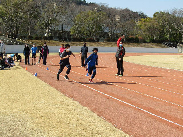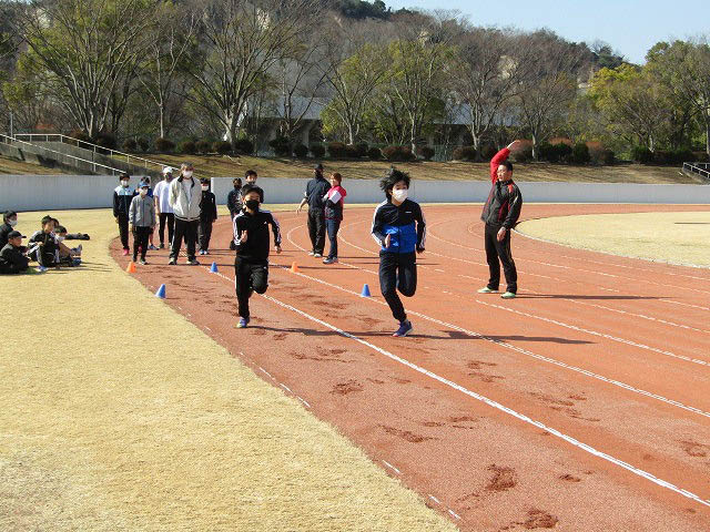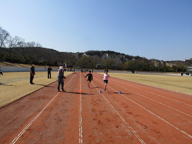グランドで50mタイムトライアルをしました。