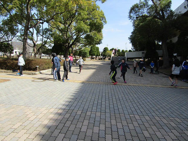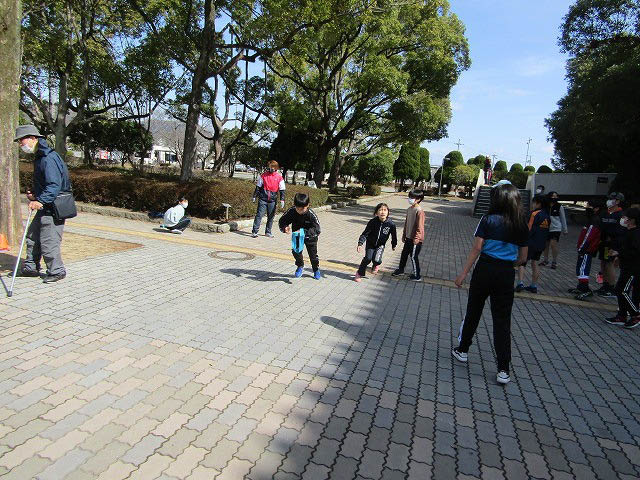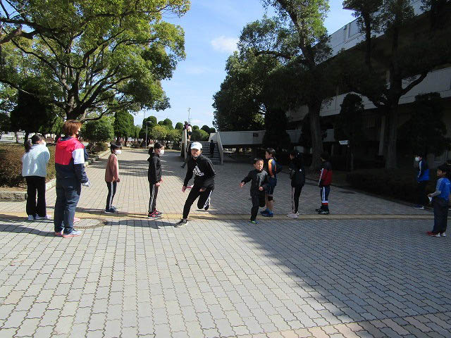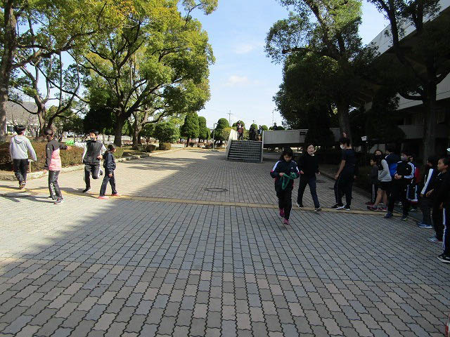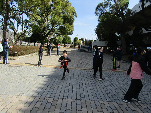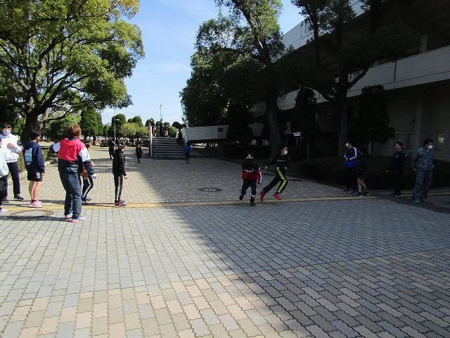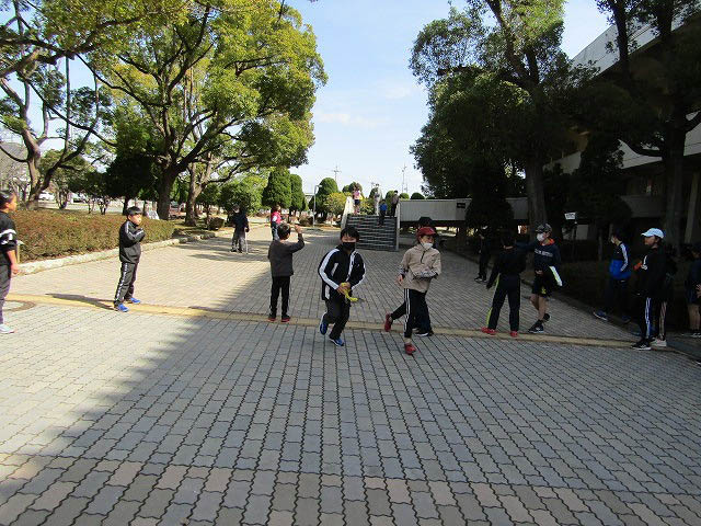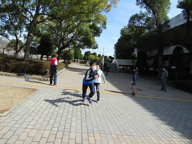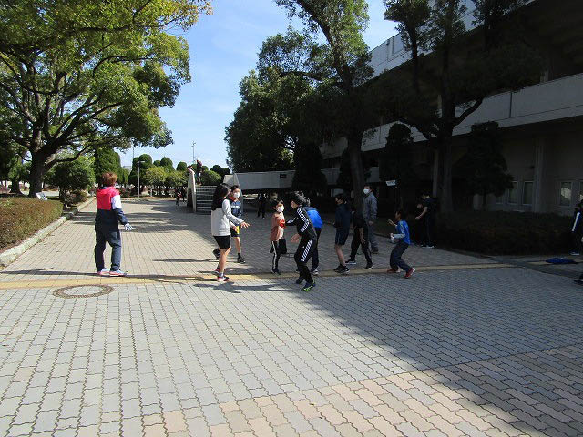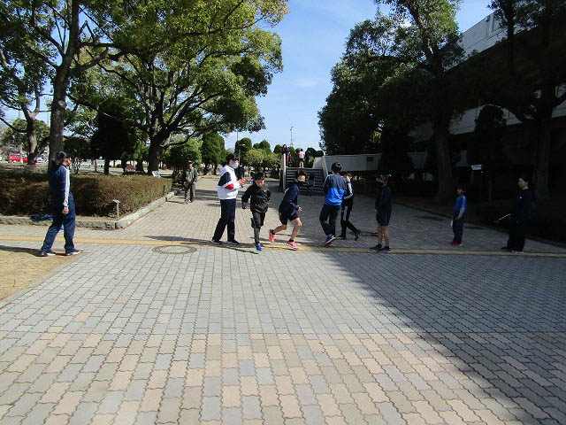 基本ドリルの後、8チーム分かれてのミニ駅伝を(卒業生も参加だよ)