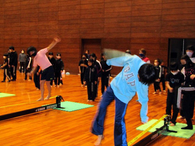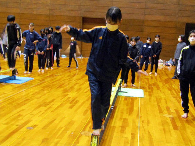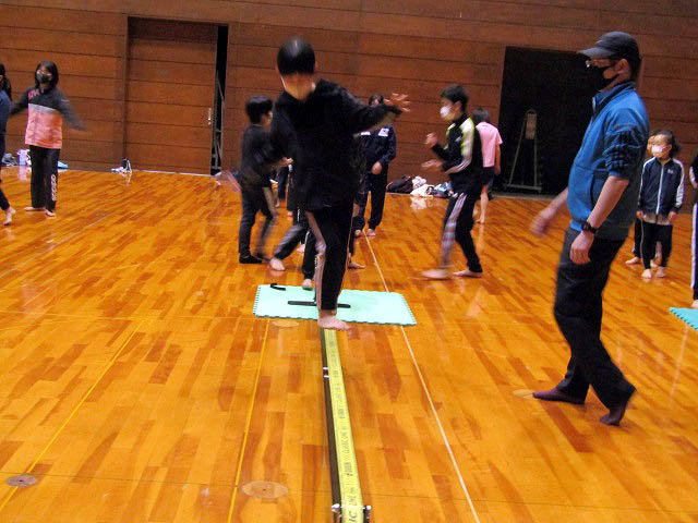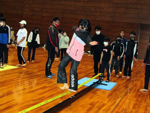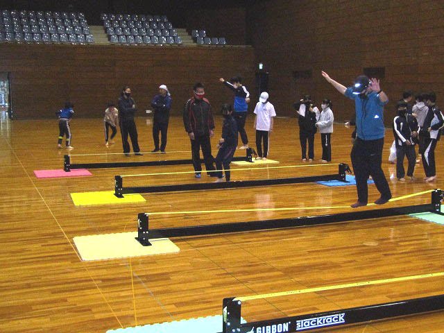 体育会館で基本ドリルの後、バランスのトレーニングでした