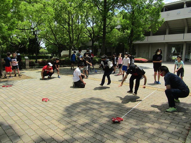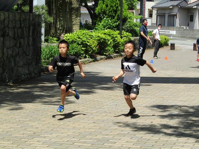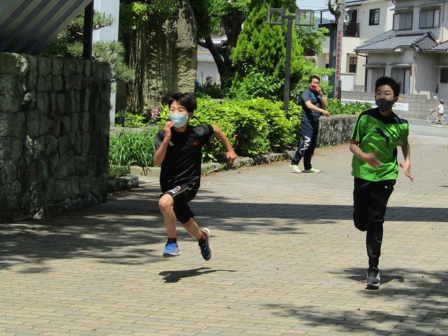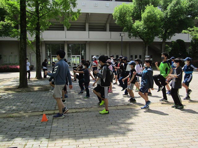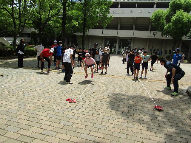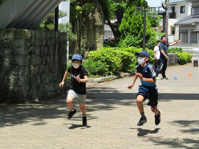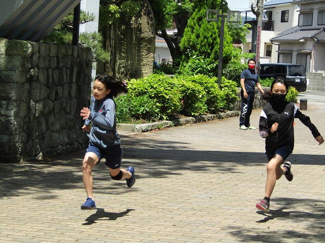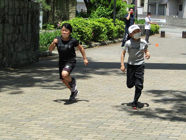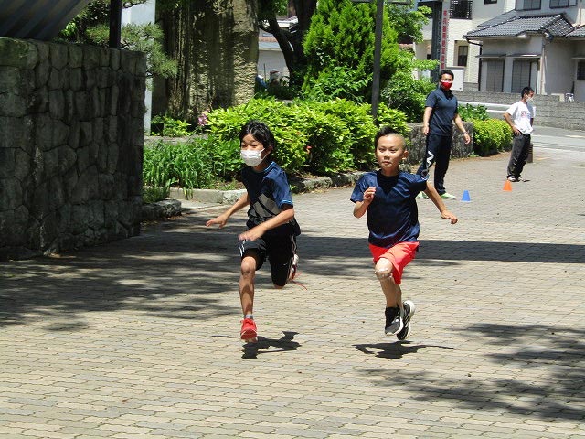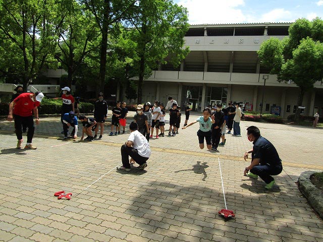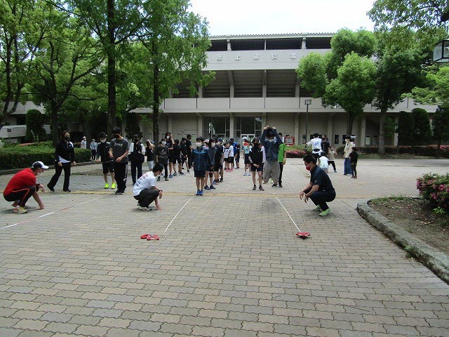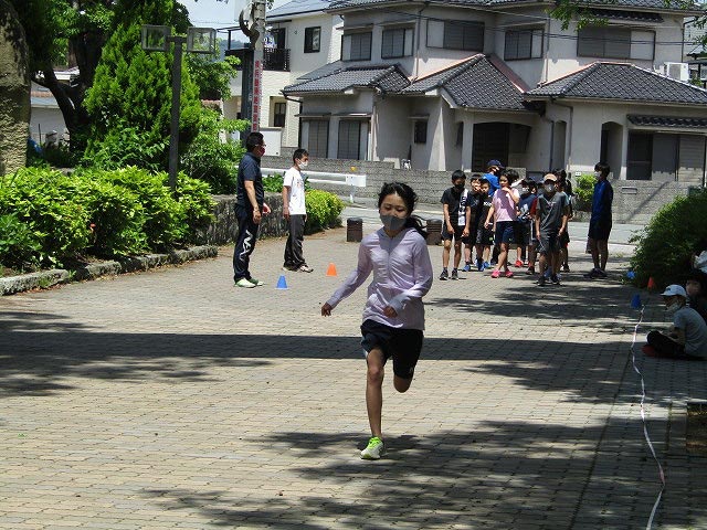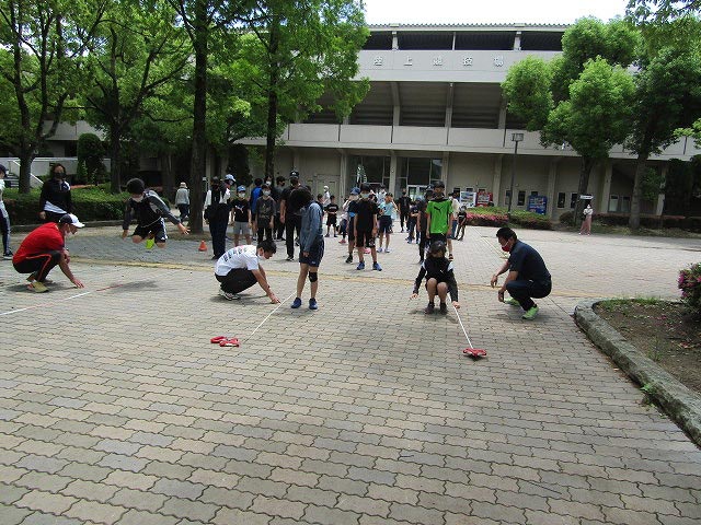 基本ドリルの後、50mタイムトライアルと立ち幅跳びの測定をしました。