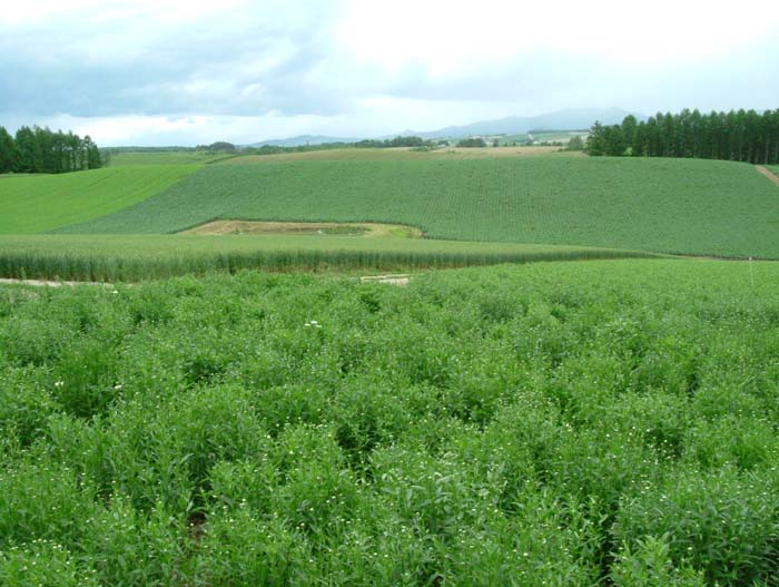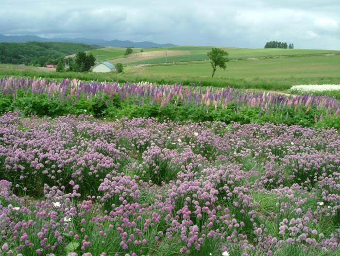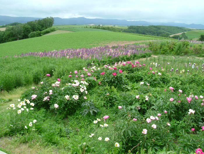 至る所にルピナスが咲、トウモロコシ・大豆・砂糖大根・ジャガイモ・・・・