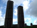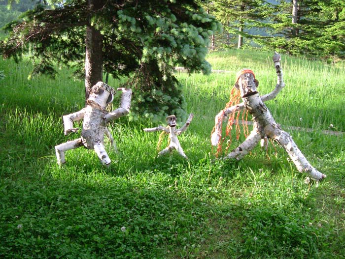 白樺の木で作られ人形に迎えられて36階建てのツインタワーをイメージした建物でした。