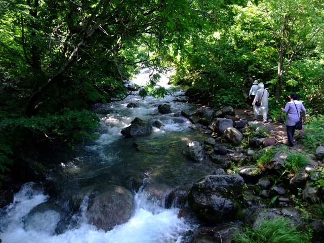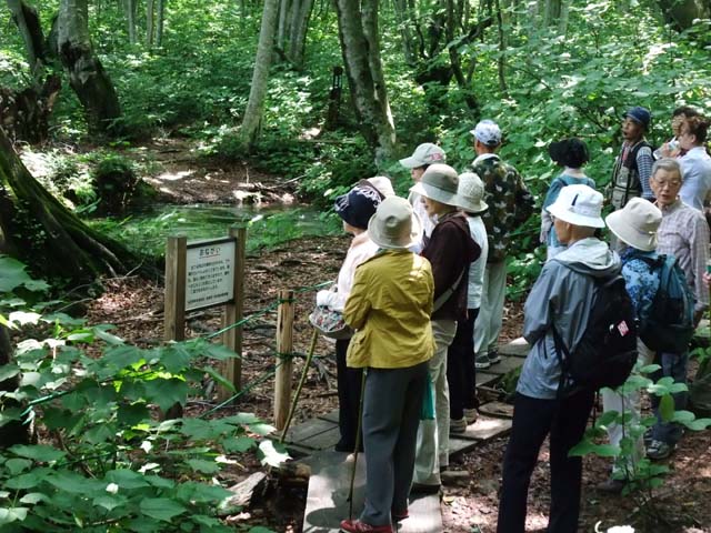 森(出壺の)にわき出る量は1分間に家庭用お風呂の500杯分とか、約3時間のコースを歩いた後は栗駒山荘で入浴でした。