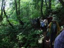 湿原をすすにつれて、生い茂る葉は光をさえぎり、「もののけ」の妖気が漂い、ひんやりとしていました。