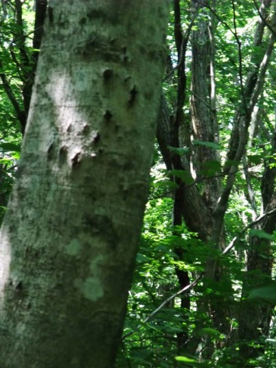 前日の雨から一転・・・ルートから目に出来るだけでも100本はくだらない数が林立する奇形ブナが