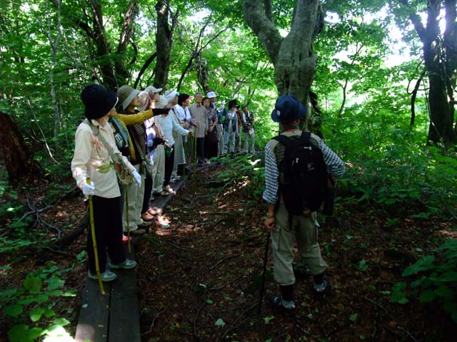 快適な木道ばかりではなく岩が露出した険しい道も、溶岩台地で根が浅いため倒木も目立ちましたが、