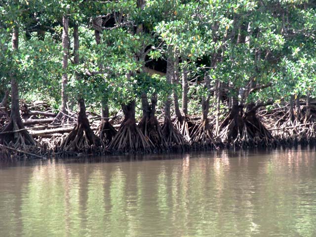観光船でジャングルクルーズに、八重山ひる木など6種類のひる木の群生がマングローブとよばている。
