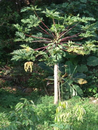入り口付近にはマンゴやパパイヤの木が、金さん銀さんが植えた記念樹のガジュマロの木が、