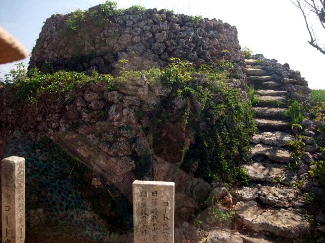 | 唐人墓石垣島南西の観音崎にある唐人の墓。1852(嘉永5)年、アメリカへ渡航中のイギリス船で虐待を続けられた中国人奴隷が暴動し船は石垣島沖で座礁。 島へ上陸したが、その後英国軍により多くが処刑などで命を落とした。島民は中国人に衣食住などを援助、亡くなった128人の霊を慰めた。現在の墓は1971(昭和46)年に墓碑の跡に新しく建立したもので、悲惨な出来事とは対照的に明るく鮮やかな色が印象的。 |