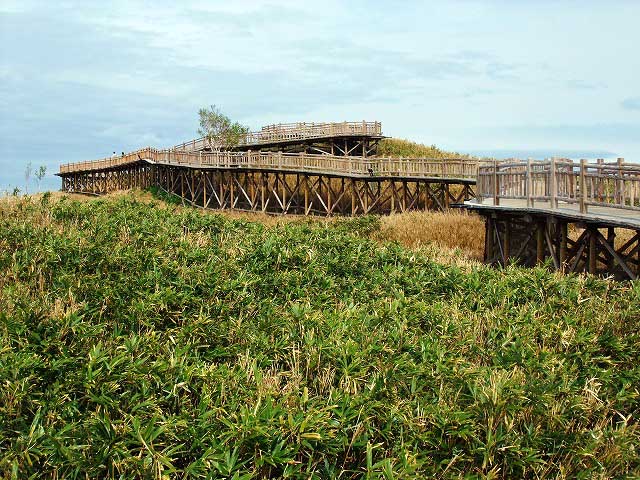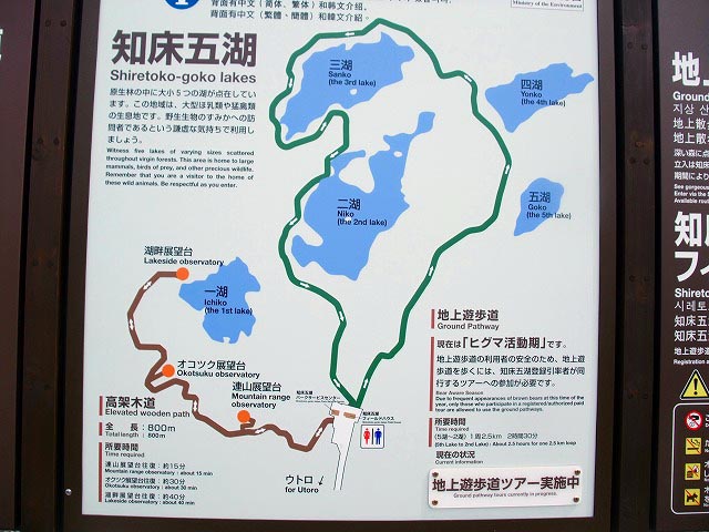 知床5湖の一つ、高架木道を、使って安全に。知床峠ではまわりは雪がいっぱいで霧の中でした。