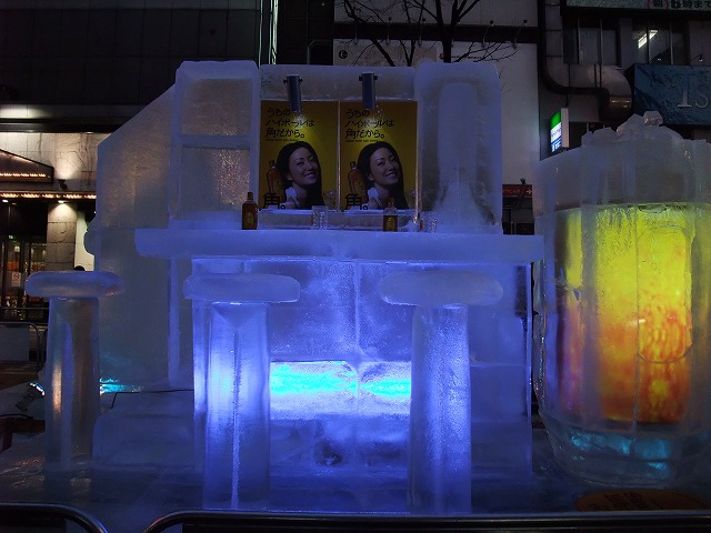 「氷を見る」から「氷を楽しむ」をテーマに、大・中の氷彫刻や氷彫刻コンクール作品などの幻想的な氷像を展示します。また、氷像に触れる、乗れるなどのふれあい広場、撮影スポットとしてのイルミネーションストリート、シンボル塔のほかアイスバーを設置して温かい飲物などを提供します。