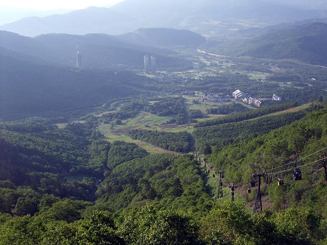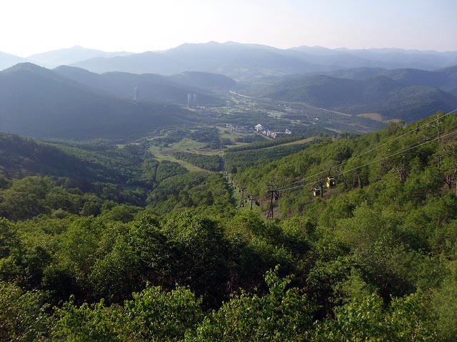 本当はゴンドラが見えないように雲海が見れるようです。残念!!でも気持ちの良い朝の空気を吸いました。