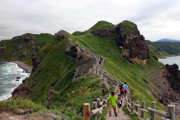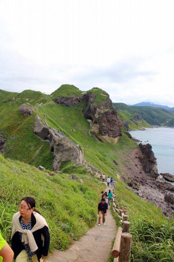 入り口からアップダウンの山道を片道25分かけて岬の先端に