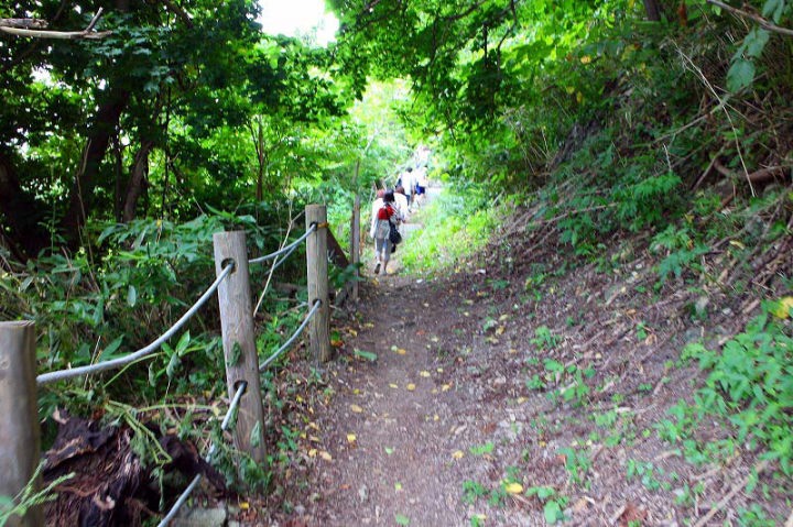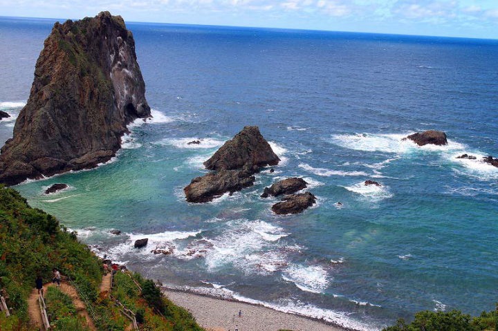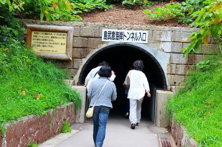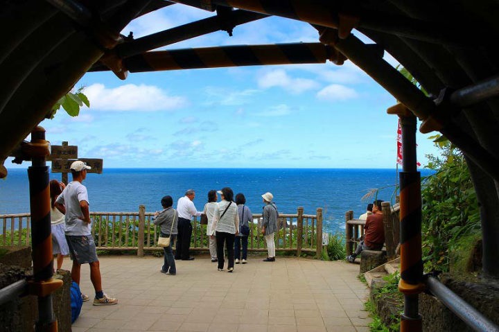 真っ暗なトンネルを抜けるとパット海岸が(島武意)、 そして階段を上り山道を行くと黄金岬の展望台が