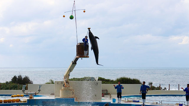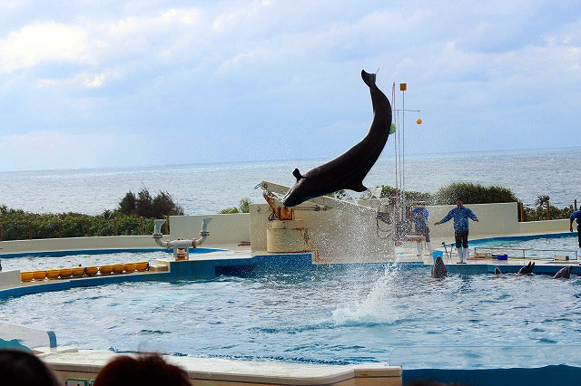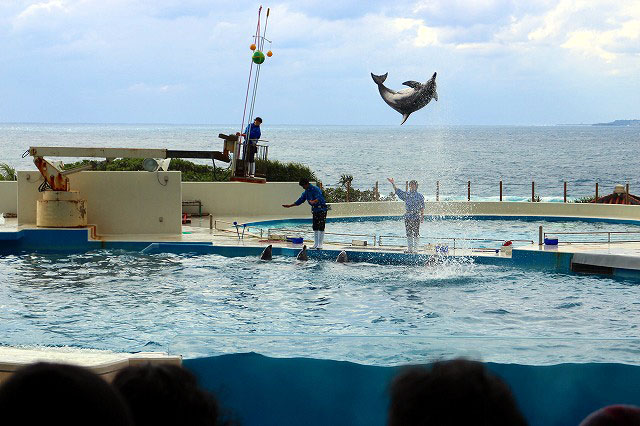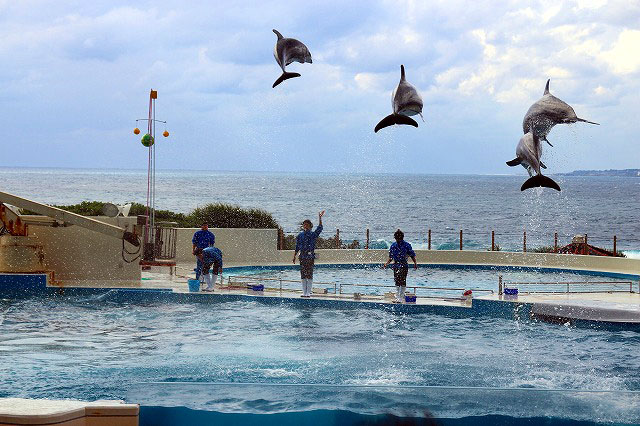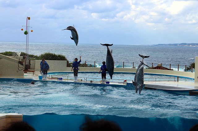 イルカショーでは連続ジャンプや4匹が一緒に・・・楽しいひと時でした