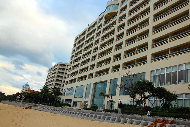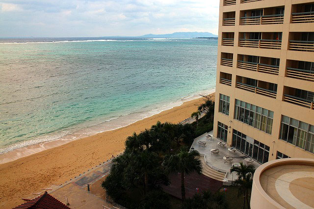 いずれのホテルも海岸に、海は大荒れでした。リザンシーパークホテル谷茶ベイに2連泊