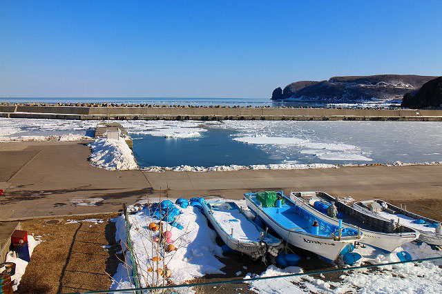 オシンコシンの滝からも流氷が海岸に見えました。オホーツク流氷館でマイナス15度を体感、クリオネも見学