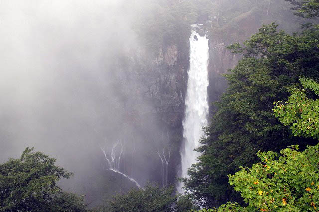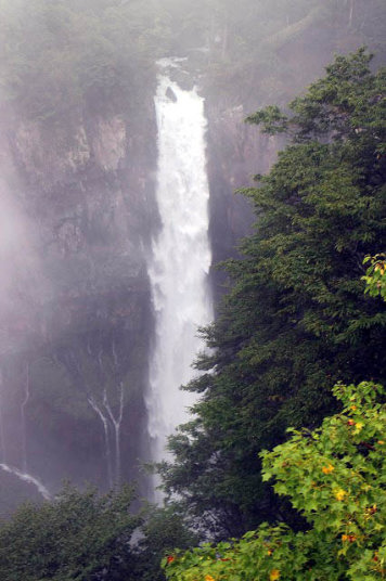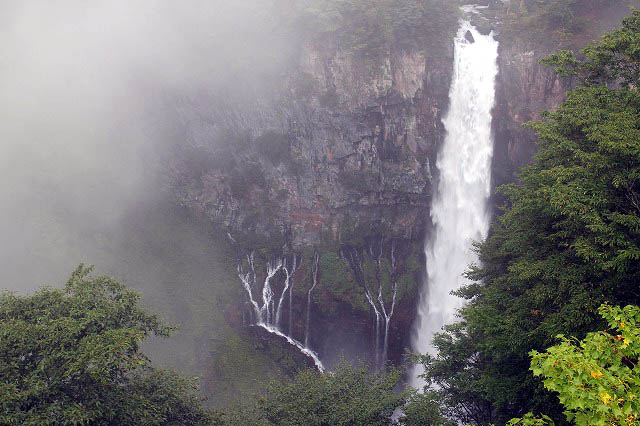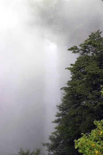 華厳の滝(ガスで音だけの滝でしたが途中から見えてきました)