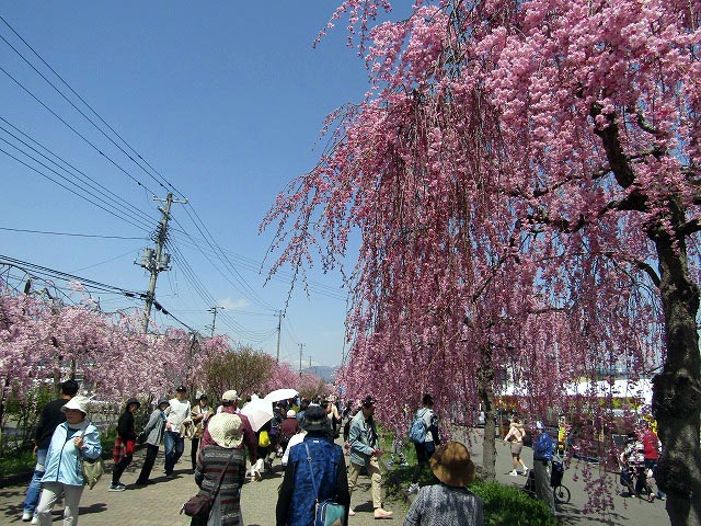 @石部桜 A喜多方・日中線しだれ桜 B鶴ケ城(会津若松) 昼食松林閣で手打ちそば