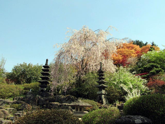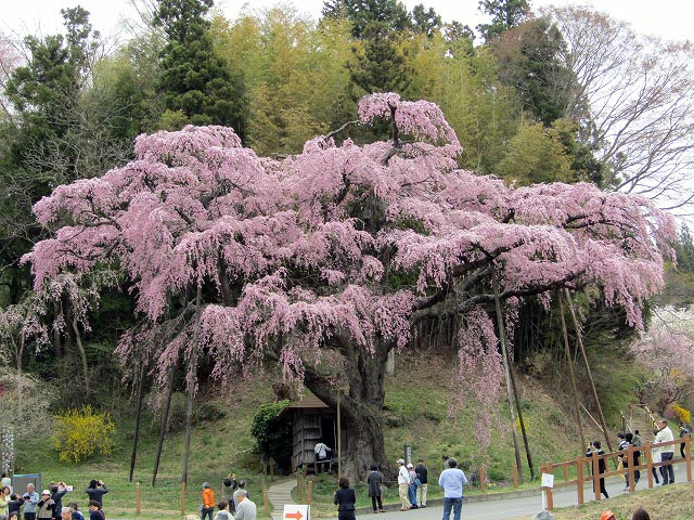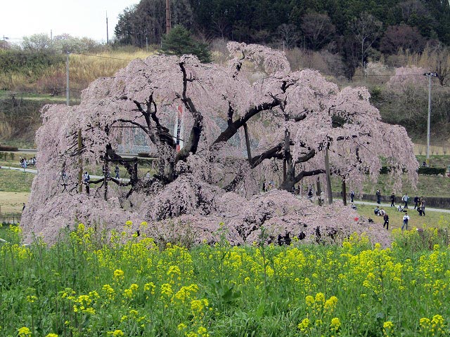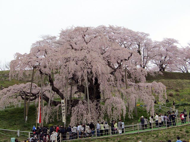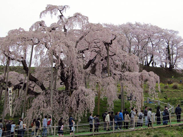 @紅枝垂れ地蔵サクラ A三春の滝桜 (樹齢千年) B白川小峰城