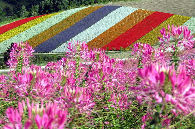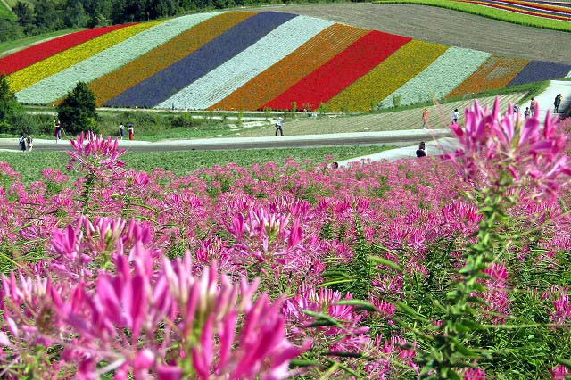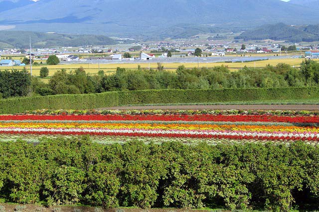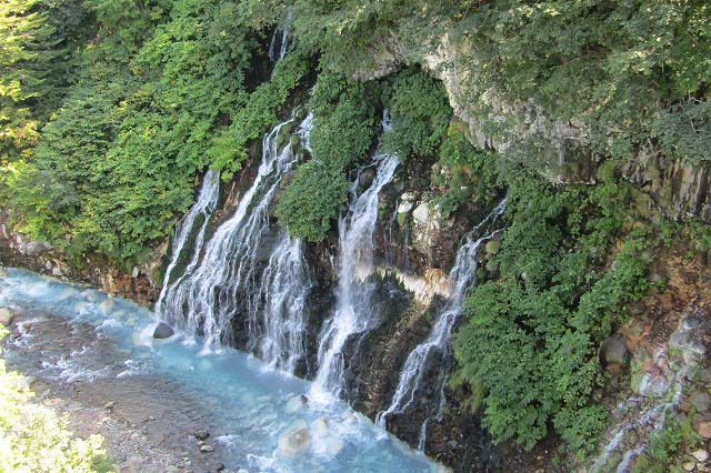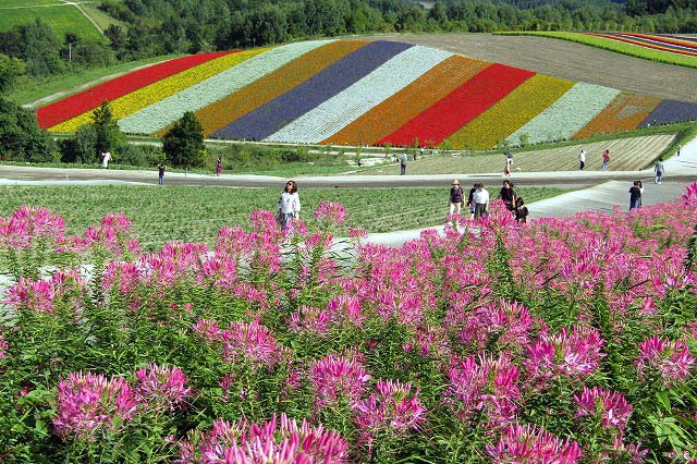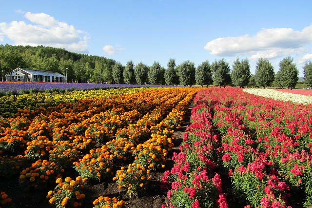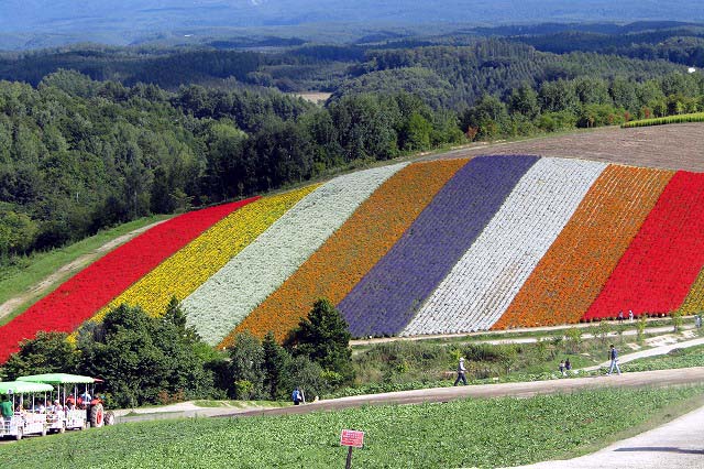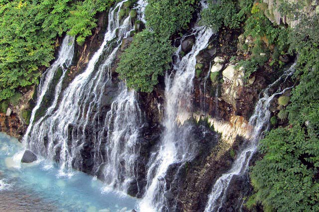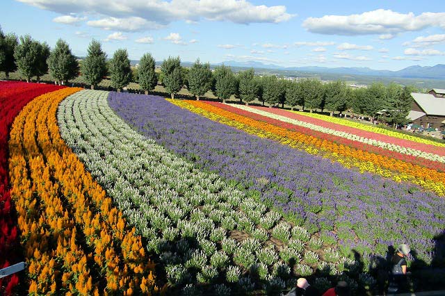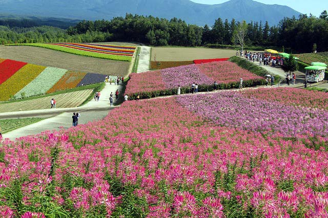 白ひげの滝・美瑛の青池・四季彩の丘・ファーム富田(いずれもバックには十勝連峰が)
