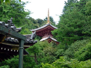 本堂の前から見て、右側の山の斜面に朱塗りの多宝塔が見える。昭和59年に完成したとのことで見た目にも新しい。 この塔は「医聖堂」と呼ばれ、日本の医学の発展に貢献した人々を祀っており、奈良・平安時代から江戸時代までの122人の医家の氏名が刻まれた碑が塔の傍に建てられている。明治以降の医家の氏名は刻まれていない。 122人の中には貝原益軒、前野良沢、杉田玄白、華岡青州、高野長英、緒方洪庵など一般によく知られている人の氏名も見ることができる。 |